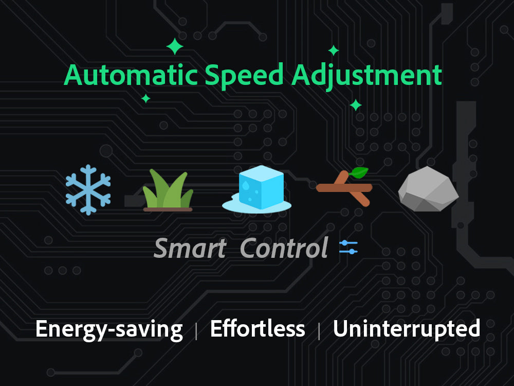 The smart control panel automatically detects heavy resistance and adjusts torque to prevent stalling when clearing dense or packed snow.