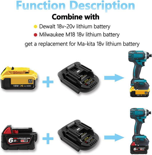 DM18M Battery Adapter – DeWalt/Milwaukee to Makita 18V Tools DM18M Battery Adapter for Makita 18V Tools Convert DeWalt 18V...