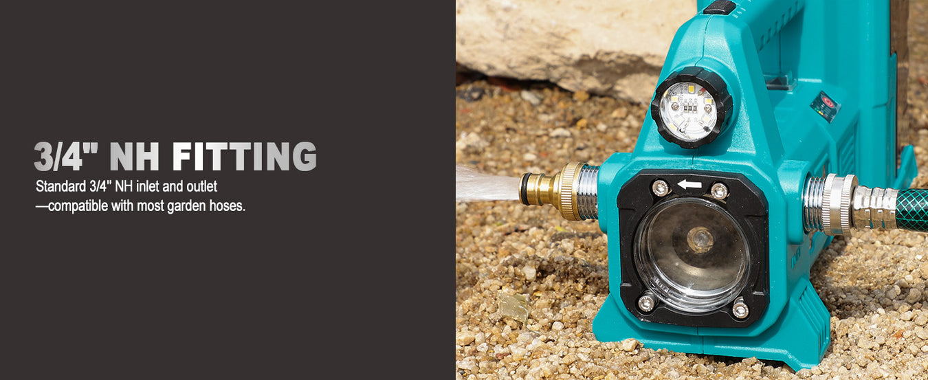No priming needed—just connect the hose, insert the battery, and start pumping.
