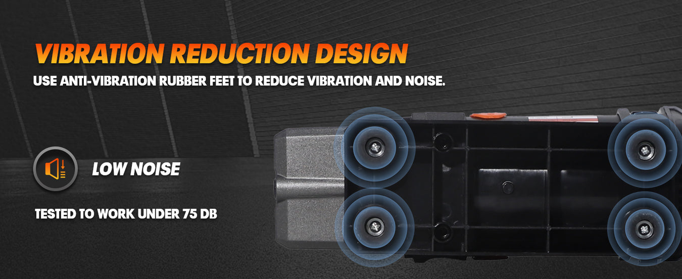 Low Noise & Vibration Reduction: Designed with anti-vibration rubber feet to minimize operational noise and vibrations, providing a quieter and more stable working experience. Noise level does not exceed 75 dB.