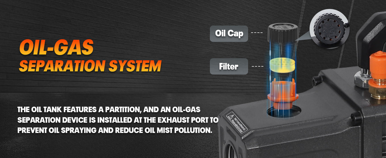 Oil-Gas Separation System: The oil tank boasts a layered design, and the built-in oil-gas separator at the exhaust port effectively prevents oil spraying and minimizes oil mist pollution, ensuring a cleaner working environment.