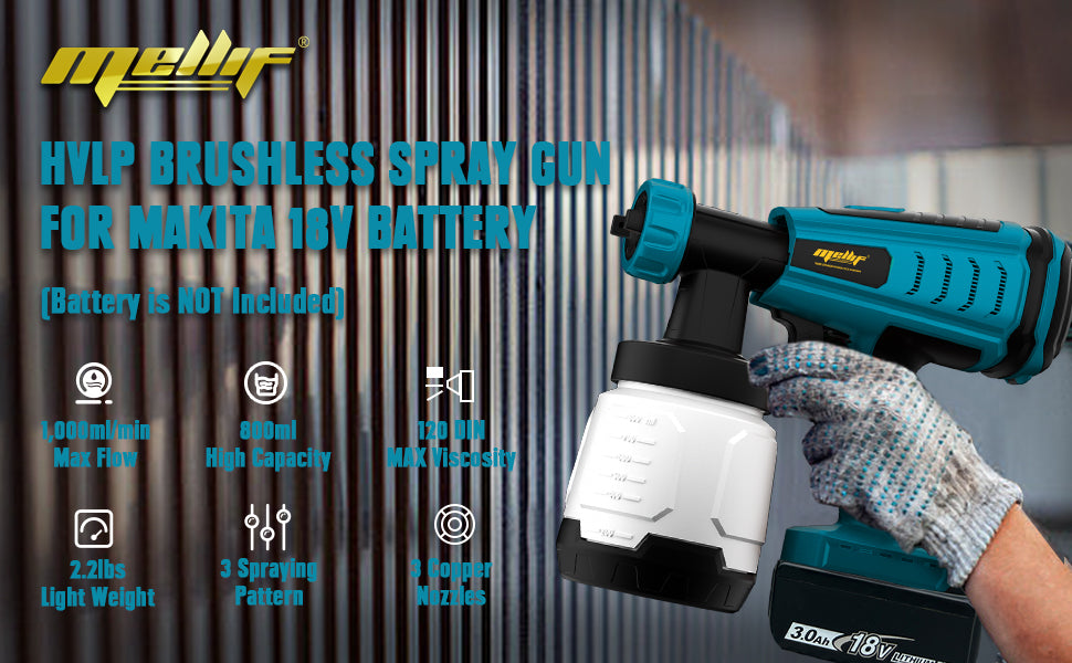 Mellif HVLP-Farbspritzgerät ohne Bürsten, kompatibel mit Makita 18-V-Akku (Akku nicht im Lieferumfang enthalten)