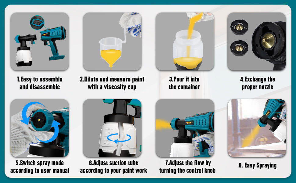 Einstellbare Durchflussregelung: Regulieren Sie die Farbausgabe ganz einfach, um das gewünschte Finish für verschiedene Oberflächen zu erzielen.