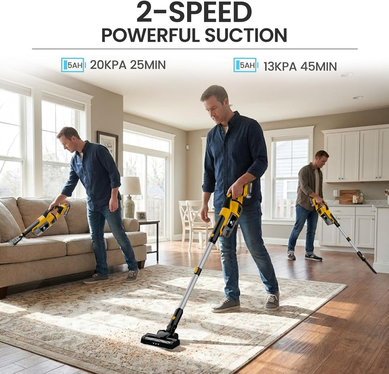 Strong Suction: 190W brushless motor delivers up to 20kPa powerful suction.