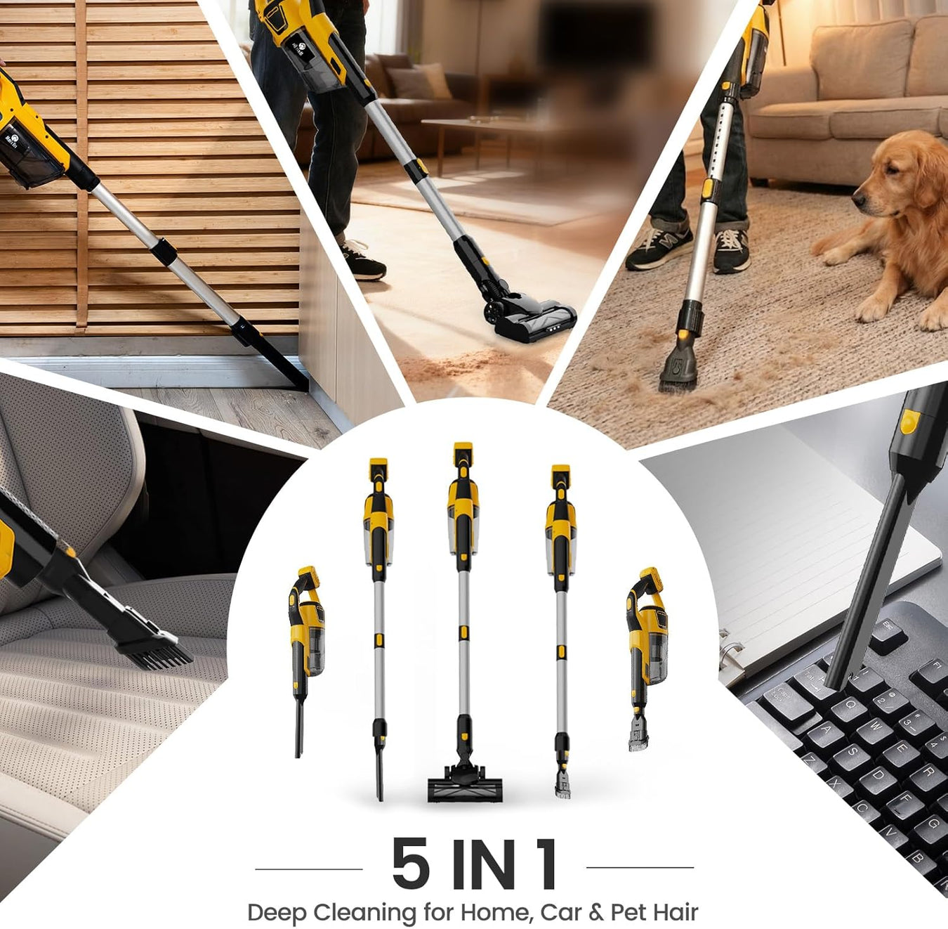 5-in-1 Versatility: Converts between stick and handheld with multi-angle mop head.