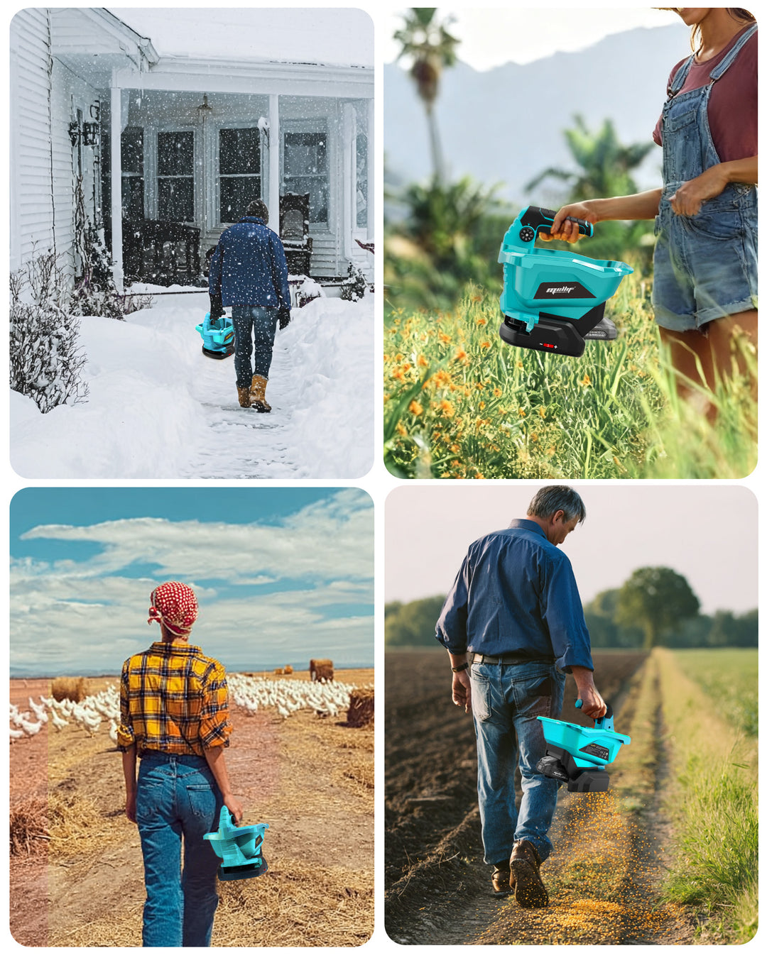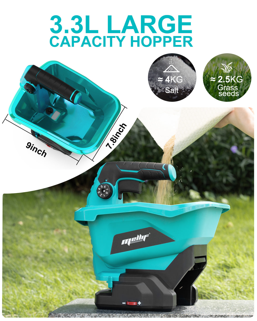 - Cordless Power Spreader – Compatible with Makita 18V batteries (battery not included). Perfect for seed, fertilizer, or ice melt.