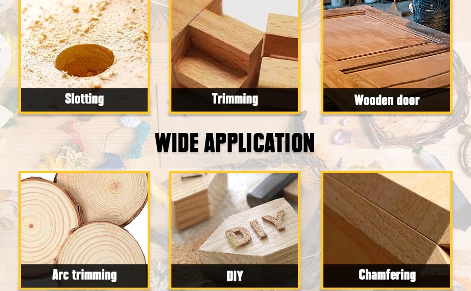 All-in-One Kit – Includes 12 router bits, guides, tools, and accessories for wood trimming, edge routing, chamfering, grooving, and more.