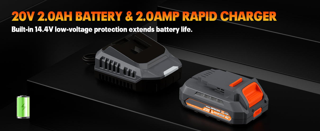 - Sécurité intégrée – Arrêt automatique en dessous de 14,4 V pour protéger la batterie et l'outil
