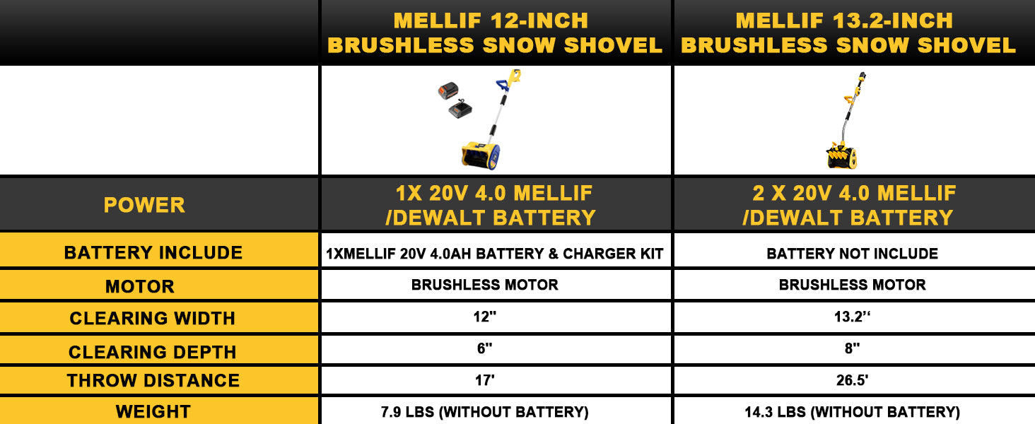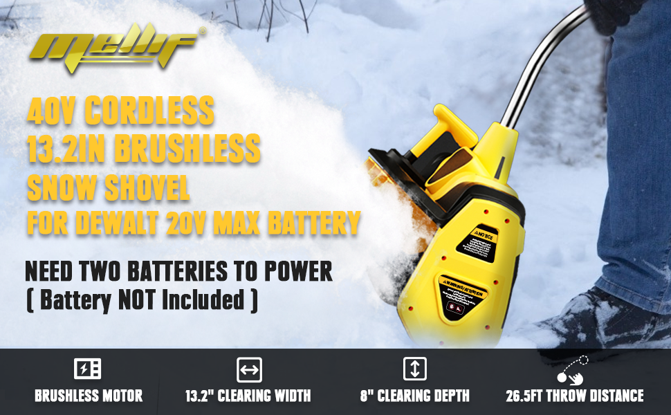 Pelle à neige Mellif 13,2'' 40V, compatible avec batterie Dewalt (batterie non incluse)
