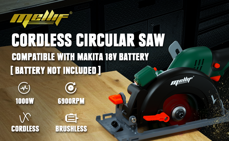 Scie circulaire sans balais Mellif compatible avec batterie Makita 18 V (batterie non incluse)