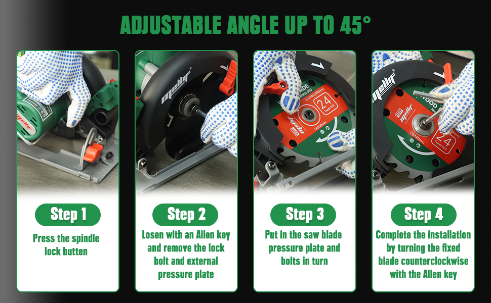 Angles réglables : Personnalisez vos coupes en toute simplicité. Profondeur de coupe maximale de 51 mm (2 po) à 90° et de 35 mm (1 3/8 po) à 45°.