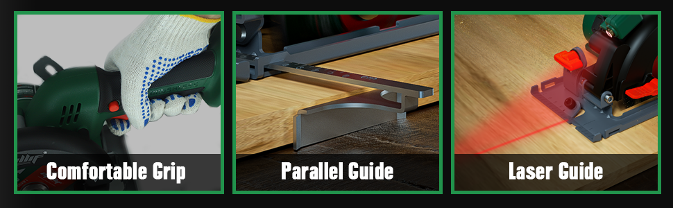 Coupe de précision : réalisez des coupes précises grâce au guide laser et au guide parallèle intégrés, garantissant des lignes droites à chaque fois.