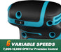 Brushless Motor: 6 speeds (7,000–12,000 OPM) for precise sanding control.