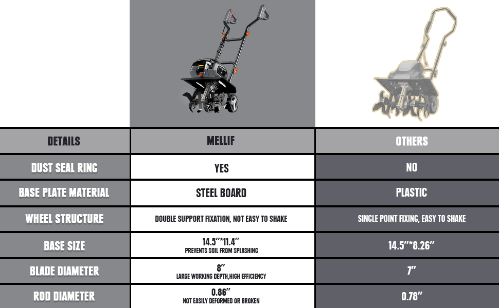 Mellif Cordless Garden Tiller/Cultivator,Compatible with Dewalt 20V Max Battery(Battery Not Included)