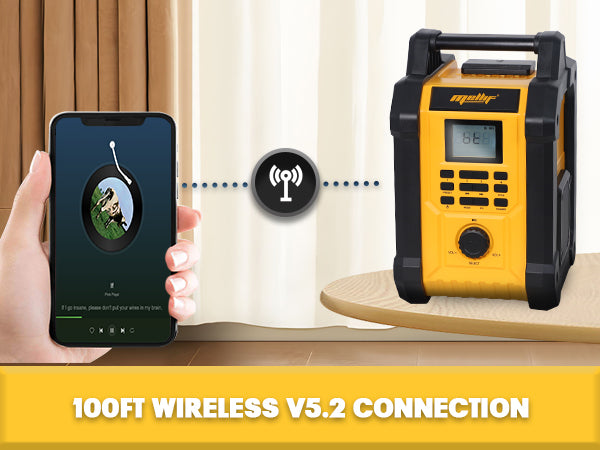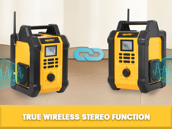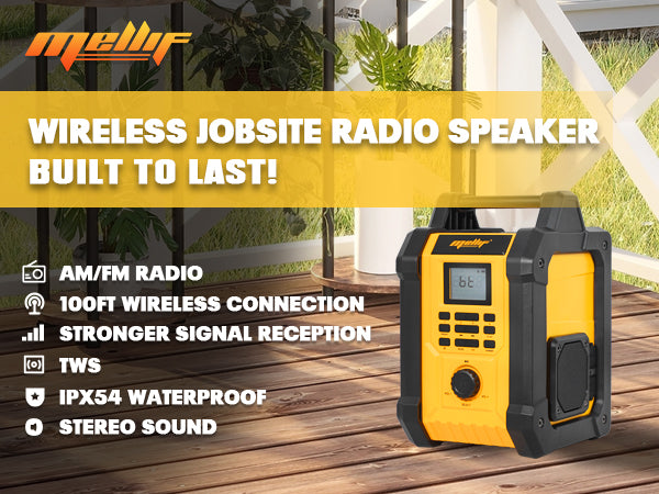 Mellif 20V Jobsite Radio Bluetooth Speaker, FM/AM TWS