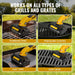 Quiet & Versatile: Low-noise, ergonomic non-slip handle; works on stainless steel, porcelain-coated, flat-top, and cast iron grills—perfect for home and outdoor BBQs.