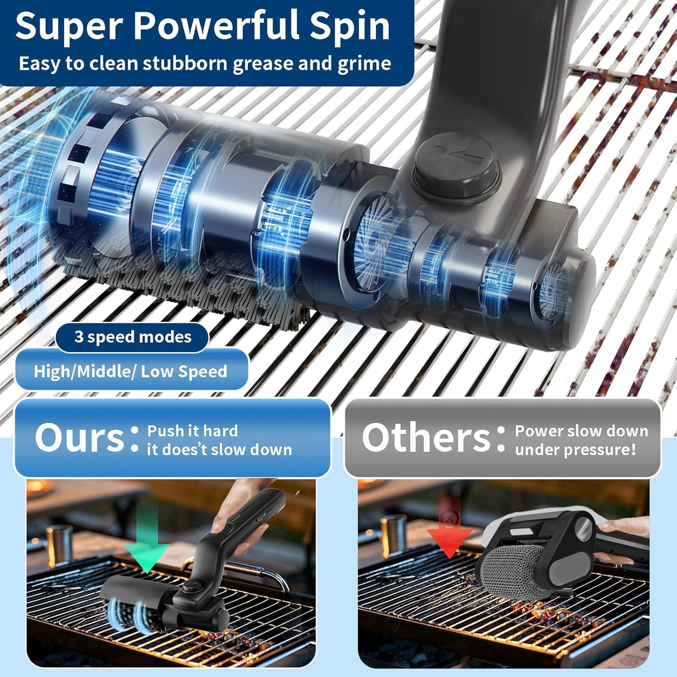 - Powerful Cleaning – 300–450 RPM motor removes tough grease and grime without slowing under pressure.